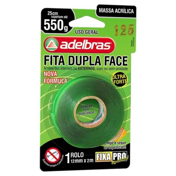 FITA ADELBRAS DUPLA FACE MASSA ADESIVA 12MMX2M