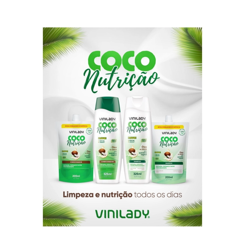 MODO DE USO: Aplique sobre os cabelos molhados e massageie suavemente. Enxágue. Repita a operação se necessário. Para melhores resultados utilize a linha completa Coco Nutrição.