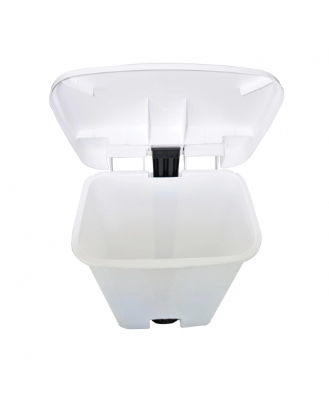 Sua tampa com sistema de abertura e fechamento através de pedal promove a vedação do coletor evitando a dispersão de odores e a entrada de insetos, além de evitar os riscos de contaminação.