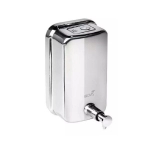 Em aço inox polido resistente, esta saboneteira com capacidade de 500ml, possui trava de segurança e o abastecimento é feito por uma abertura (com chave) no topo do produto.
