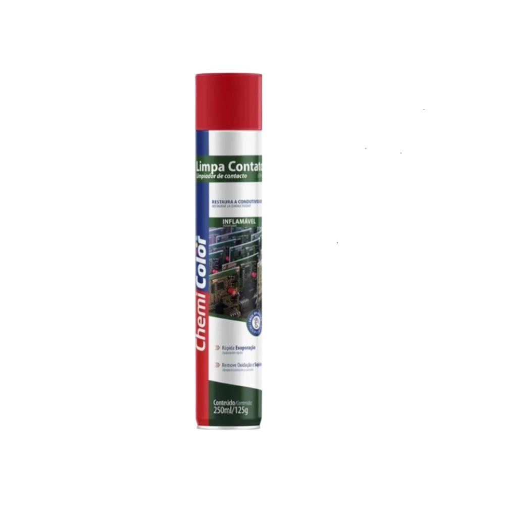Limpa contato chemicolor 250ml – potência e precisão para eletrônicos e equipamentos de alta sensibilidadegaranta o funcionamento ideal dos seus dispositivos com o limpa contato chemicolor 250ml. Formulado para limpar e proteger componentes eletrônicos e elétricos, ele remove sujeiras, poeiras, oxidações e resíduos que prejudicam o desempenho dos aparelhos, tudo sem deixar vestígios. Com secagem rápida, esse limpa contato é ideal para equipamentos de precisão, eletrodomésticos e dispositivos eletrônicos, prolongando sua vida útil e garantindo eficiência. Funcionalidade: eficiência e precisão para eletrônicosdesenvolvido para remover oxidações e sujeiras que comprometem o desempenho, o limpa contato chemicolor age diretamente nos pontos críticos dos circuitos, restaurando a qualidade de contato e assegurando uma conexão limpa e confiável.