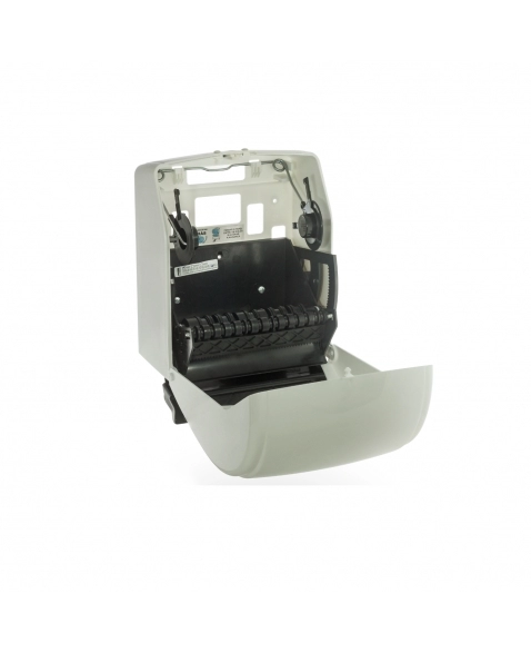 Trabalha com papel toalha em bobinas de 196 a 200 mm de largura. O tamanho da folha é definido pelo usuário através do acionamento da tecla.